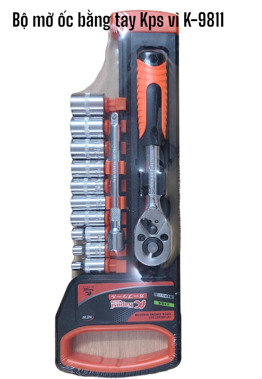 Bộ mở ốc bằng tay (Bộ tuýp khẩu  1/2 )  Kapusi vỉ K9811_12PC (ốc 8-24mm)