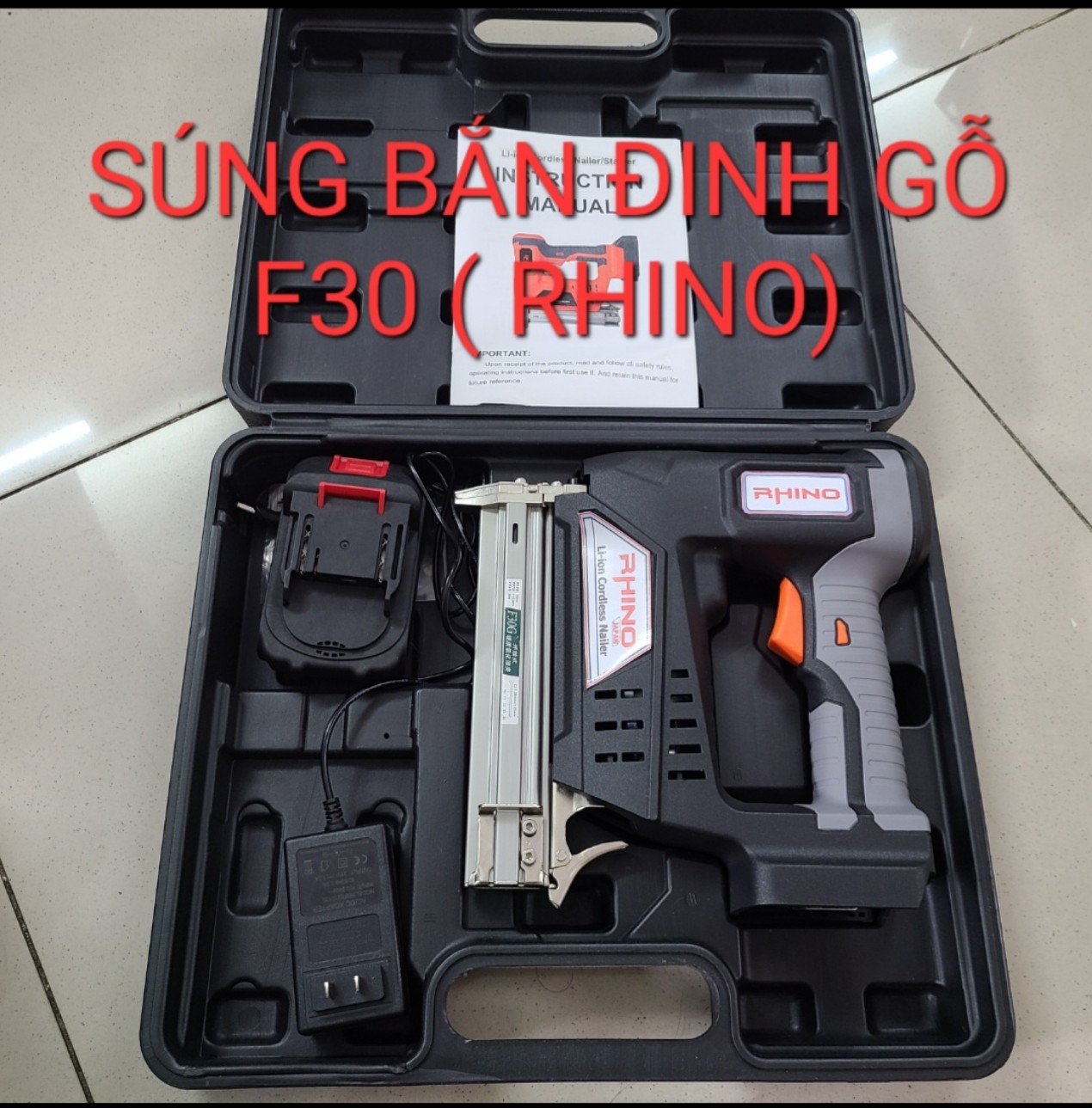 –Súng Bắn Đinh F30 Dùng Pin với ray đinh chứa tối đa 100 đinh,khả năng bắn liên tục lên đến 60 đinh/phút,lực bắn khỏe,chân pin thông dụng giống với máy siết ốc,khoan vít,có thể lắp vừa các dòng pin 5 cell,10 cell,15 cell.